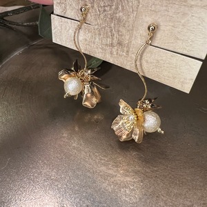 ネジバネ式イヤリング ゆらゆらと お花とパールが華やかに揺れてくれます♡ とーっても可愛い